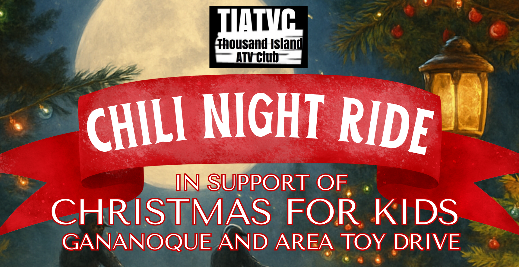 Join us for a ride and a chili dinner in support of the Christmas for Kids Gananoque and Area Toy Drive. Admission by monetary or toy donation, meal free.